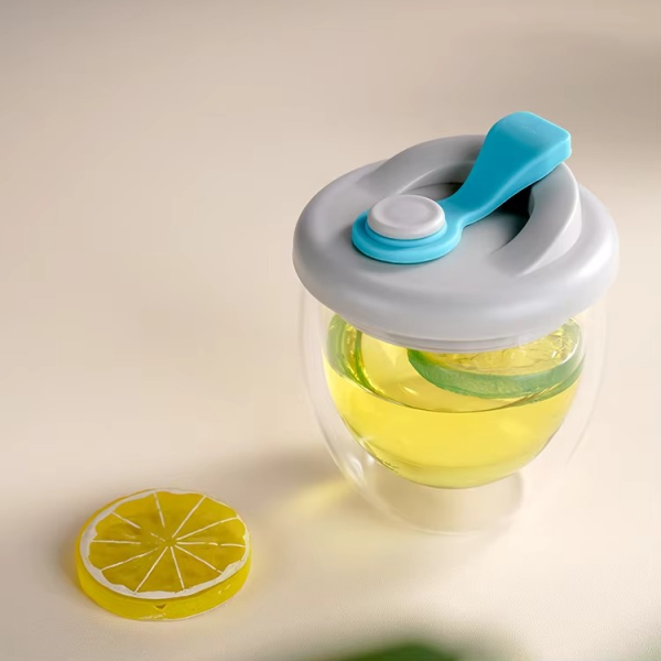 Double Walled Borosilicate Glass Cup with Silicone Lid (250ml)