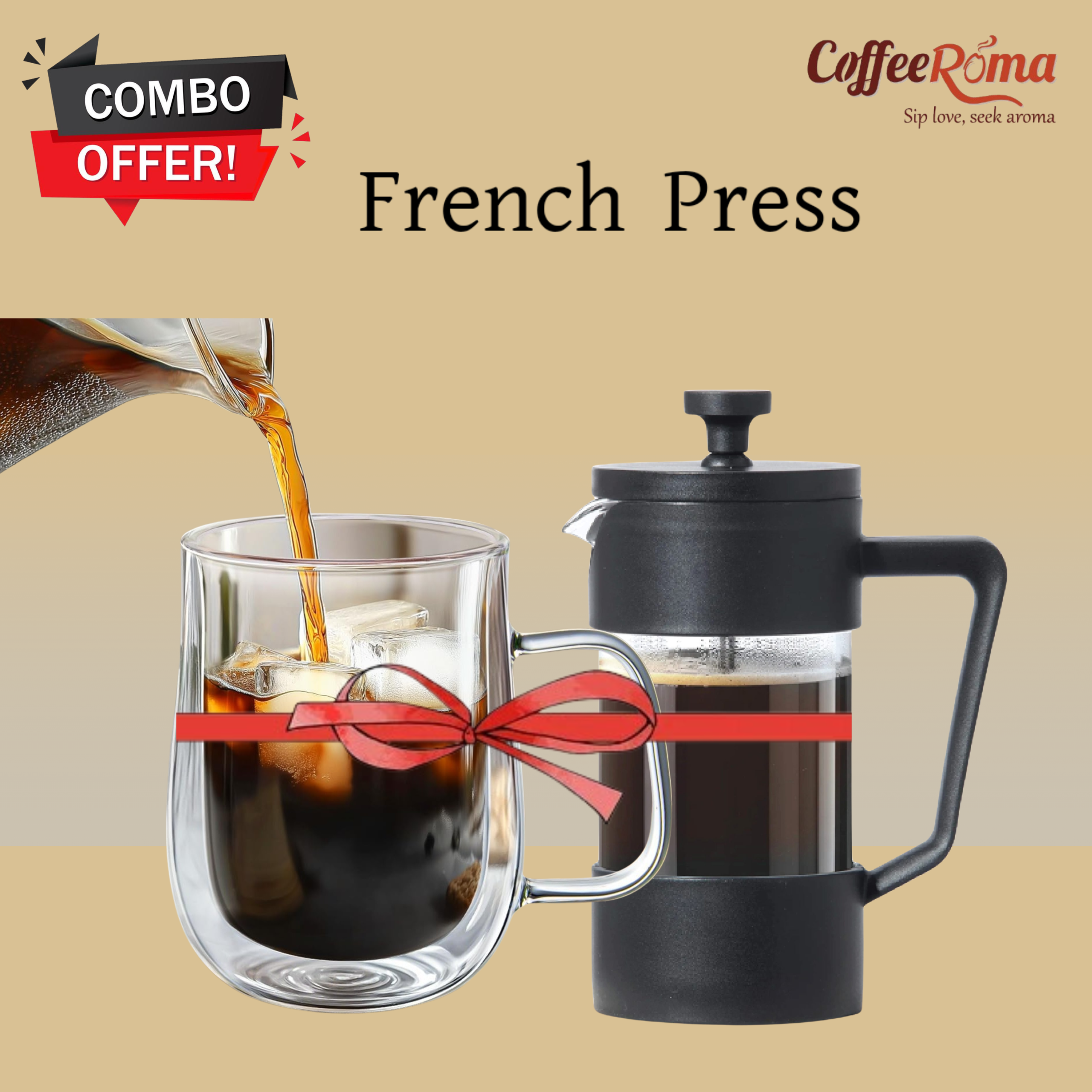 Premium 350ml French Press & 250ml Double-Layer Cup Combo Set (Seechin)